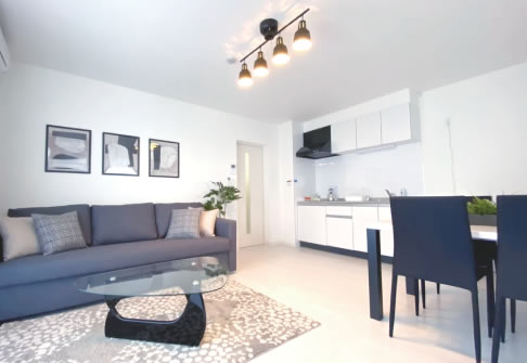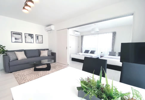 1階は黒を基調としたシックなお部屋です。大人の雰囲気を感じられるお部屋で、ゆったりとした時間をお過ごしいただけます。