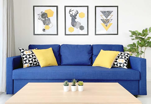 2階は、ブルーやイエローの元気が出るカラーで統一。明るくカワイイ室内は楽しい時間を演出してくれます♪